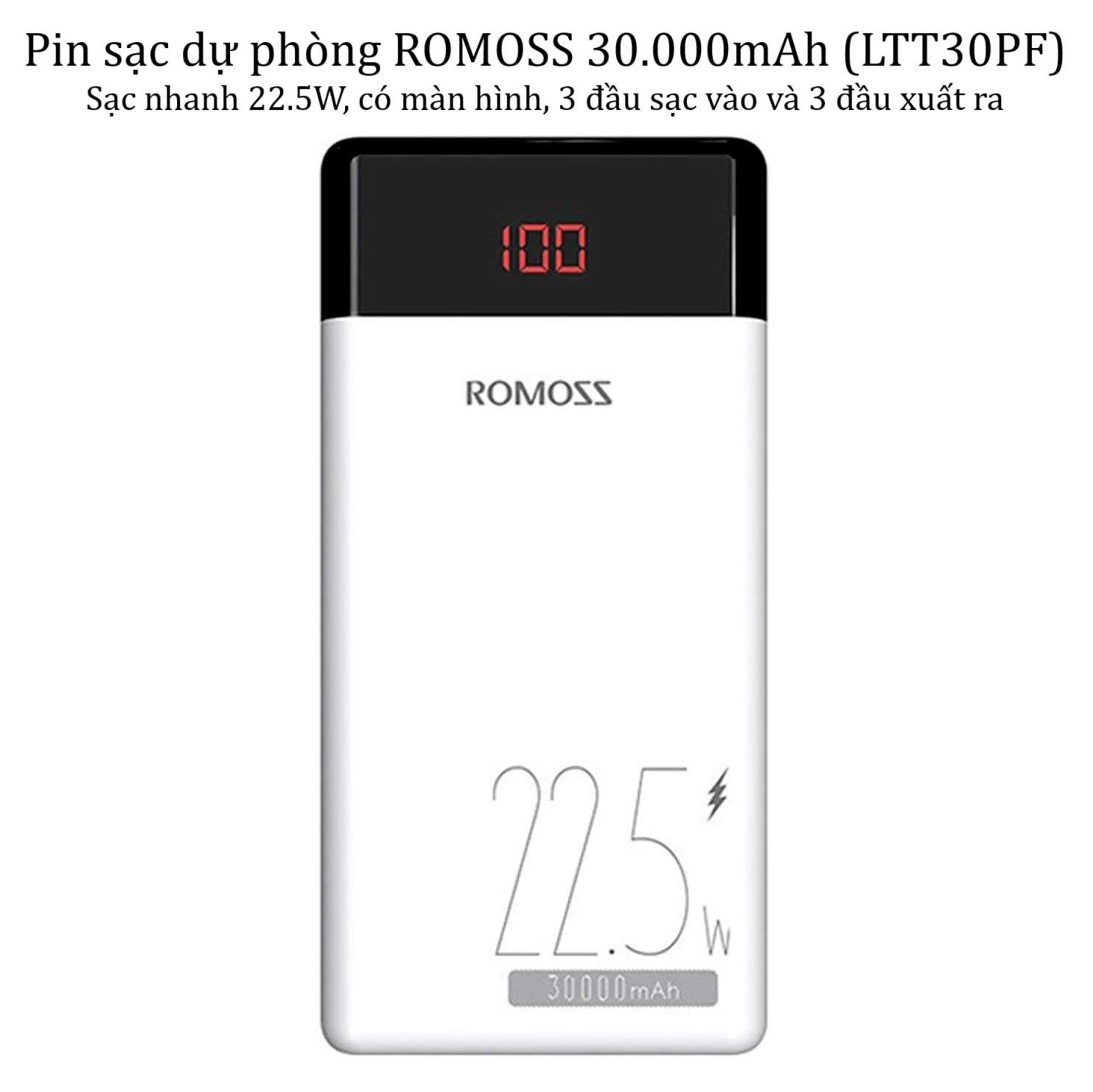 Pin sạc dự phòng ROMOSS 30000mAh (LT30PF) sạc nhanh 22.5W và có màn hình